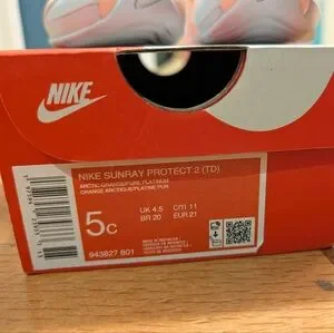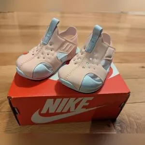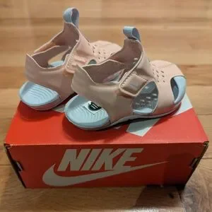 Stylish Nike kids sandals. Peach with light blue accents. Very comfortable and breathable design. Never Worn.