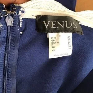 Stunning stretchy slim fit navy blue tube strapless maxi dress with white trim & slit