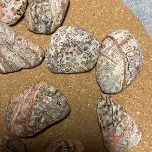 Collection of three Leopardskin Jasper tumbled stones. For collectors, wire wrapping and mediation. Set of three stones only. I will pick for you.