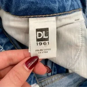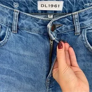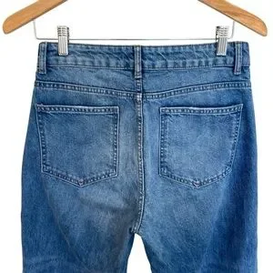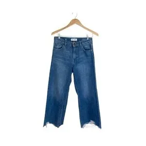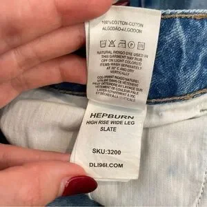 The Hepburn has a high-rise figure-flattering contoured waistband. It’s fitted through the waist and butt and tapers outward from the thigh for a wide leg that hits above the ankle. It features a fashion-forward cut with a modern-day, vintage feel. Slate is an old-school indigo wash with a heavily ravaged hem. Great preowned condition.