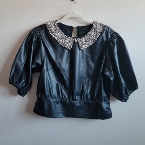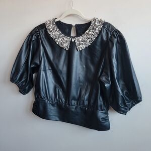 Anthropologie Maeve Faux Leather Puff-Sleeve Blouse