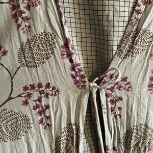 Gorgeous print on this dress. Mock layered look with tie front. Label says an XXL but see measurements as I feel it’s more of a large.Pit to pit 21” waist 38”