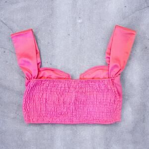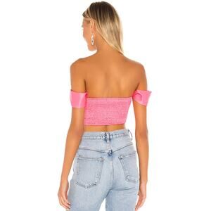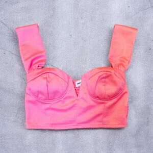 Superdown Coralia Bustier Pink Satin Off Shoulder Crop Top Medium