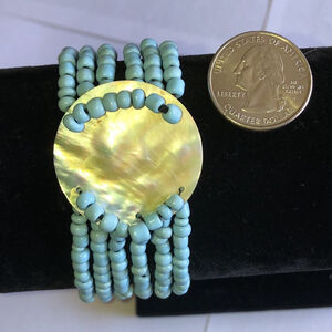 Light Blue Glass Beaded Multi Strand Abalone Shell Boho Bracelet
