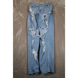 Condition: Used, fair condition with heavy intentional distressing and rips throughout the front legs. No major stains or missing hardware. See photos for details.