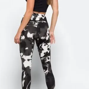 Under Armour High Rise Tie Dye Leggings Black White Ink Wash Size Large