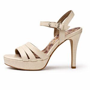 Elevate your style with these chic Sam Edelman platform sandals in a light neutral tone. Featuring a stylish textured finish, adjustable ankle strap for a perfect fit, and a comfortable platform heel, these shoes are ideal for summer events, nights out, or adding flair to any outfit.