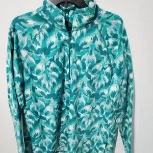 Eddie Bauer Women's Long Sleeve Polar Fleece 1/4 Zip in Greens and White- XL