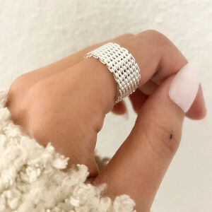 🤍 Beautiful Sterling Silver Mesh Ring Weave Ring Band