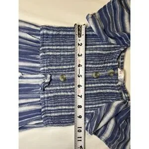 Dress up your little girl in this cute and colorful Japna Kids girls one-piece jumper romper. The romper features a button closure that ensures a secure fit, making it perfect for casual occasions. It comes in a fun navy blue and white color combination that will surely make your child stand out from the crowd. Small picks on left sleeve (as seen in picture) but not noticeable once on.This romper is easy to care for as it is machine washable, making it convenient for parents on-the-go. It is made in India and is not handmade. Get this adorable romper for your little girl today and watch her light up with joy!