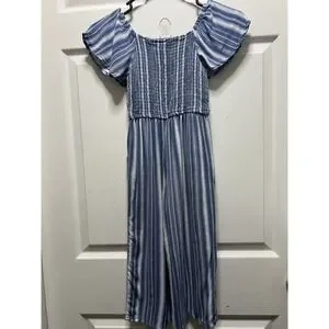 Japna Kids Girls One Piece Jumper Romper Size 10 Navy Blue & White