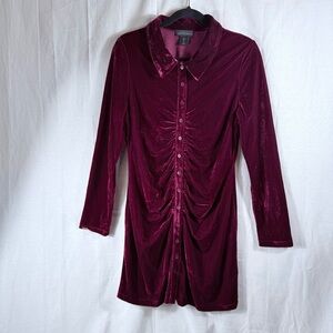 NWOT House of Harlow 1960 X Revolve Size L Red Velvet Collared Neckline and Ruching along center, long fitted sleeves. Bodycon, night out,