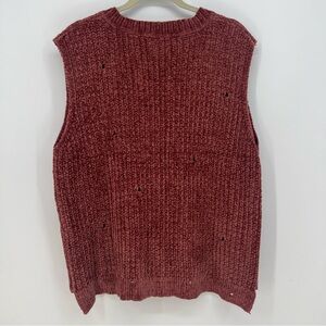 POL Sweater Vest Womens Faded Burgundy V-Neck Distressed Look Soft Feel NWOT