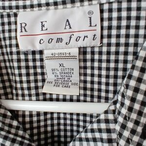 Real Comfort Black & White Gingham Button Down Shirt Woman's XL Office Casual