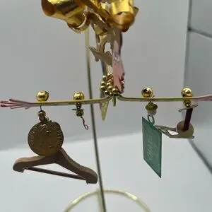 The Karen Rossi Silvestri Flight "Charge It" Multicolor Metal Ornament is a small, handmade ornament with a contemporary style. Made of metal, this painted metal ornament features a matte finish in various colors, including pink, yellow, black and gold. Measuring 4.75 inches in length and 3 inches height, this ornament is perfect for all occasions and comes with charms included. The unique design and vibrant colors make it a standout addition to any holiday or seasonal decor collection.