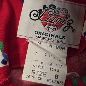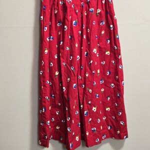 Vintage Floral Red Midi Dress Wth Bows Embellishment On Shoulders.
