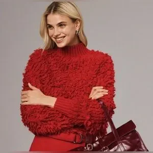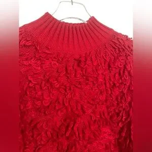 Anthropologie Maeve Callahan Mock Neck Loop Stitch Sweater Medium Red Crewneck M