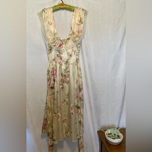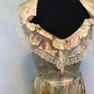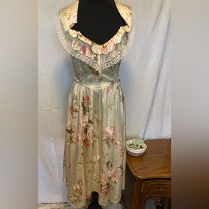 Gunne Sax Vintage Rose Tea Length Dress Size 9 Lace Detail With Boning