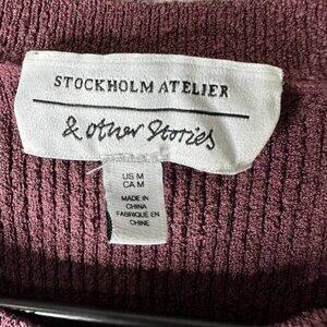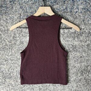 & Other Stories Tank Top Womens Medium Burgundy Ribbed Knit Silk Blend Crop