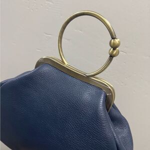 Chic design. Only one available. Handmade from genuine pebble leather, with unique vintage style metal frame. Bracelet style kiss-lock has a unique look. Can hold phone, wallet, passport, sunglasses, compact umbrella, cosmetics,, cards, coins. Casual wear or suitable for party use.