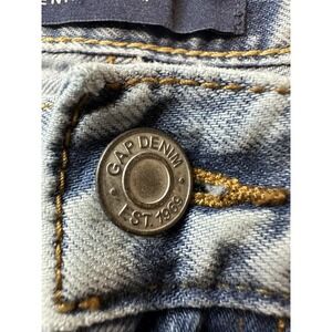 Closure/Features: Zip fly; 5-pocket styling; belt loops; GAP-branded zipper; GAP DENIM EST. 1969 button
