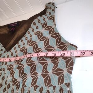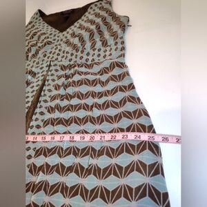 Signature by Robbie Bee women's Blue and brown geometric pattern dress size (18 W) left side zipper closure