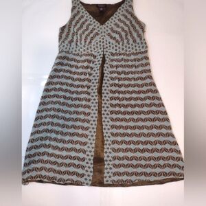 Signature By Robbie Bee Women's Silk Brown and Blue Patterned Dress