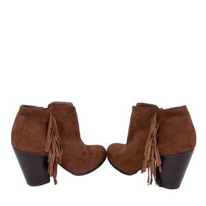 Carlos Santana Size 8.5 Brown Suede Zip Up Heeled Ankle Bootie Fringe Western
