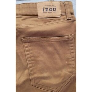 The IZOD Comfort Stretch UltraFlex Soft Knit Denim Jeans in Men's Size 32x34 are a versatile and comfortable option for various occasions. Made from a cotton blend denim fabric, these pants feature a solid brown color and a straight leg style. The regular fit and comfort waistband provide a comfortable and relaxed wearing experience. With a 5-pocket design and a zip/button closure, these jeans are both stylish and practical for everyday wear. Whether for casual outings, travel, or business purposes, these IZOD jeans offer both style and functionality for the modern man.
