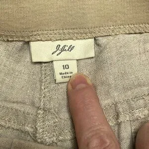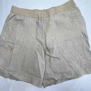 J Jill Elastic Waist Linen Khaki Cargo Shorts Size 10