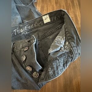 We the free FREE PEOPLE: DISTRESSED BLACK MAGGIE JEANS size 27 OB901514