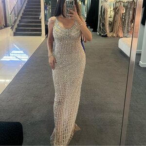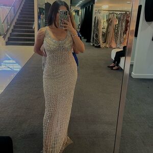 Never worn. Altered to size 6 5’3. Shine in this stunning beaded evening gown, perfect for special occasions. The intricate beadwork adds a touch of glamour to your look.