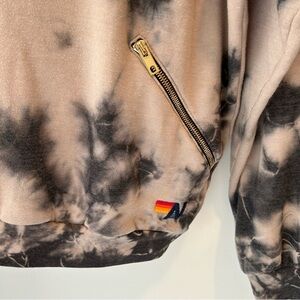 Aviator Nation Hand-Dyed Zip Sweatshirt Tan and Black Size Large