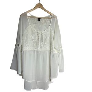 Torrid White BOHO Lace Flowy Long Sleeve Top Size: 2X