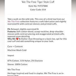 Free People We the Free Tiger Style Cuff Top Tea Combo NWOT