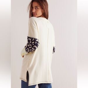 Take a walk on the wild side. This one-of-a-kind top from our We The Free collection features a soft fabrication and slightly oversized fit with contrast sleeves and printed cuffs.