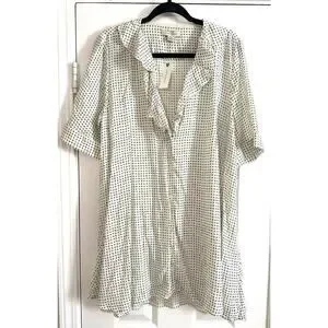 11.1 Tylho ANTHROPOLOGIE Minnie Blouse Ruffle Tunic Top Shirt Cross Print- L NWT