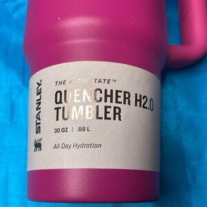 Please see all pictures for information. The Stanley quencher H2O Tumblr is brand new 30 ounces in fuchsia pink. The Stanley product is recycled stainless steel BPA free, splash proof and dishwasher safe. It has double wall vacuum insulation. The straw is reusable and fits in most every automobile car cup. It also carries a lifetime warranty from Stanley a great gift for someone special or gift it to yourself!
