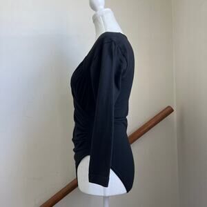 Vintage Gold Label Victoria Secret 80s Long Sleeve Bodysuit Black Wrap Surplice