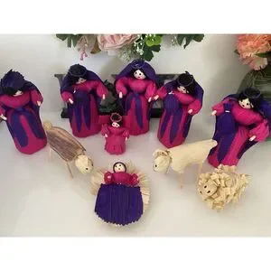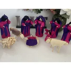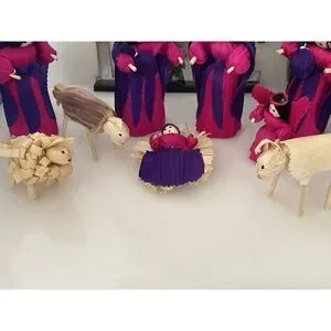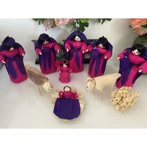 10 Piece Handmade Vintage Christmas Nativity Set Corn Husk 5" Dolls Roatan Honduras. Celebrate the holiday season with this beautiful set of 10 handmade Christmas Corn Husk Dolls from Raotan, Honduras. These dolls are crafted with care using corn husks as the main material. Each doll measures 5.5" inches in length and features intricate details that make them a perfect addition to any nativity collection. The set includes characters from the Nativity story and is perfect for displaying during the Christmas season. These dolls are truly a unique and special addition to any collection. Bring a piece of art into your home this holiday season with this beautiful set of Christmas Corn Husk Dolls. Items are the same as shown in pictures, All Items Sold "AS IS". Thank You!