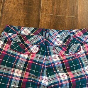 Louis Castel Paris Stretch Golf Pants in Olive and Red Plaid (Alept/Green)have 2 Hand Pockets and 2 Back pockets. NWT. Excellent Condition; no stains or signs of wear. Korean Size 75. US 8