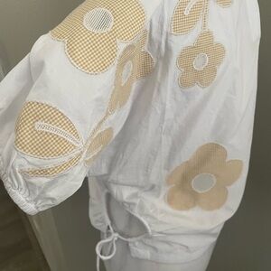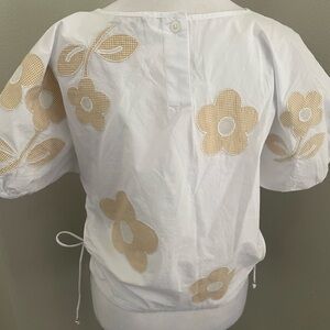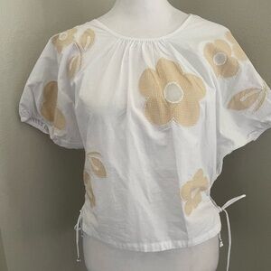 Madewell Embroidered Poplin Puff-Sleeve Cutout Crop Top