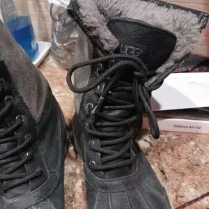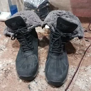 UGG Women's Adirondack III Black Grey Waterproof Leather Snow Boots.