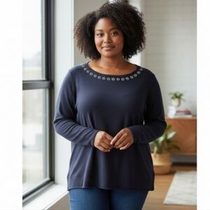 Lane Bryant Dark Blue Lightweight Sweatshirt with Rhinestone Embellishments