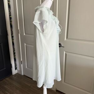 This vintage piece is such a cutie! From the intimates pink label of luxury designer Oscar de la Renta, this nightie features a v-neckline with ruffles and tie bow, ruffle cap sleeves, micro polka dot overlay in baby blue, a-line relaxed fit and fully lined. Given the age, this dress is in excellent condition. Easy to style coquette girlie, juxtapose with combat boots or wear for a sweet nights rest!