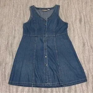 VTG Bugle Boy Snap Up Denim Mini Dress Sleeveless Scoop Neck 90’s Y2K Women’s 12