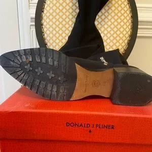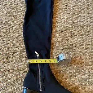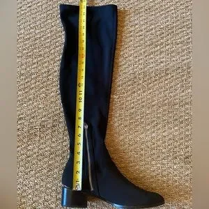 Sleek black over the knee boots. Features side zipper. Stylish and versatile.