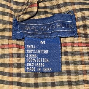 J McLaughlin Waxed Cotton Chore Coat SZ Medium Olive Green Plaid Lining