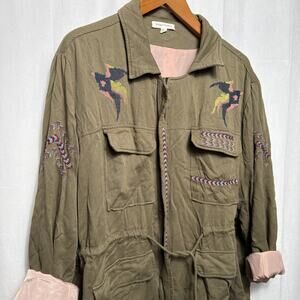 Olive Green Utility Jacket 3x Women’s Embroidered Birds Military Style Boho Fall