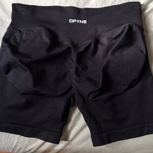 Comfortable black athletic shorts by Dfyne. Perfect for workouts.